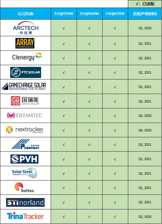 早在今年2月,全球8大跟踪支架品牌相继发布全面适配210超高功率组件,跟踪支架产品与210超高功率组件的全面适配,显示了全球领军跟踪支架企业对210至尊系列组件产品高价值度的认可,以及在全方位协作、推进全球光伏度电成本降低、平价应用上的共同目标。
