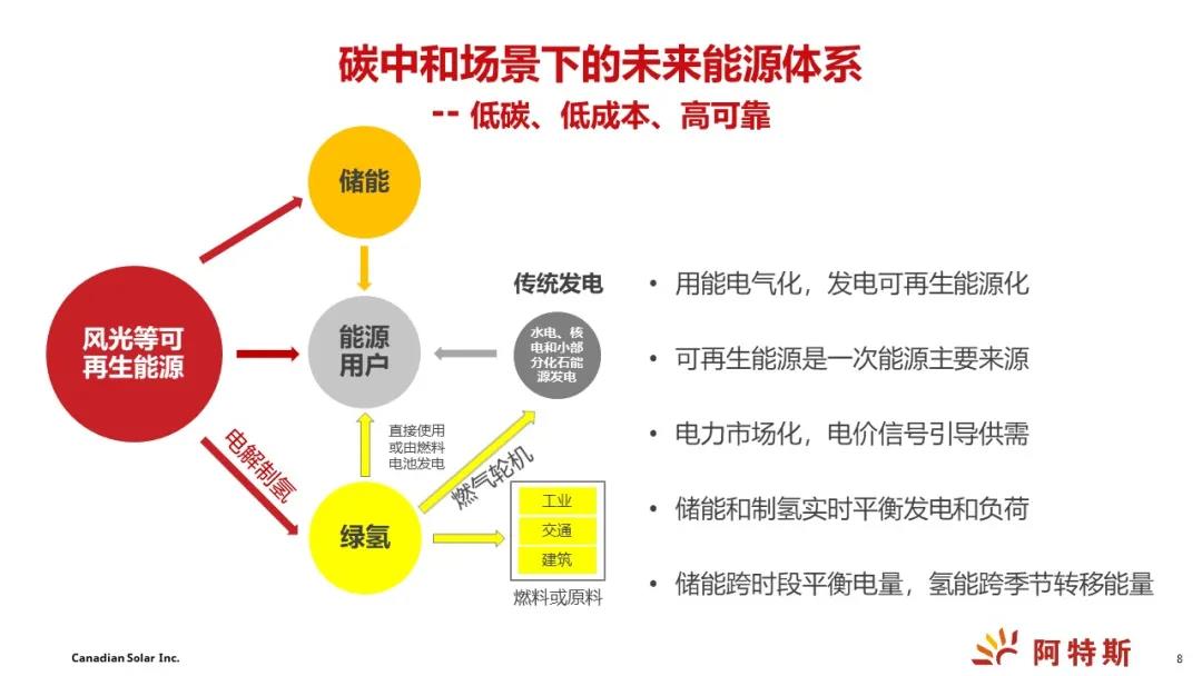 智是指智能化,包括智能电网和储能等提升对风光可再生能源消纳的技术,以及利用大数据和AI进行调度和电能交易,提高度电价值。阿特斯今年向美国交付约1GWh的大型储能系统,是美国市场排名前三的储能系统供应商,并有6GWh的储能系统订单储备和17GWh的储能项目储备。为了提高储能系统的度电价值,阿特斯投资了英国Habitat公司,该公司开发基于AI的储能交易软件,并提供储能交易服务。