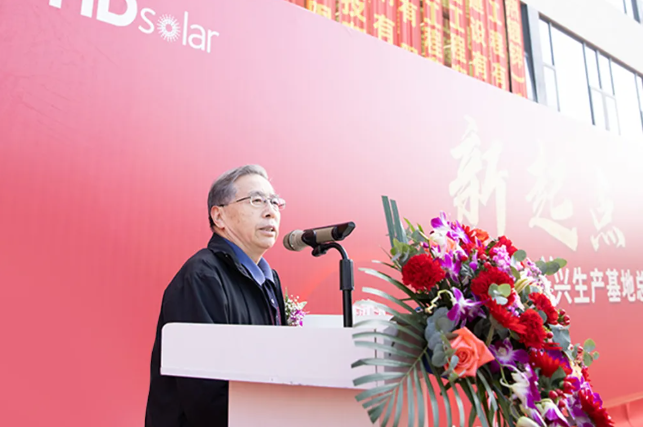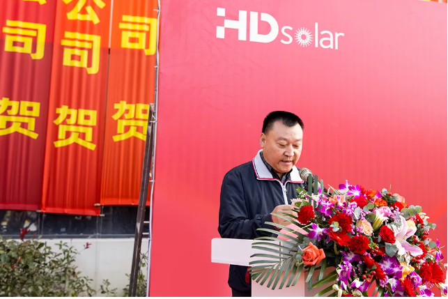 董事长朱修锋的致辞拉开了落成仪式的序幕,他首先对关心和支持华鼎新能源发展的各界人士表示衷心地感谢。自成立以来,华鼎新能源深耕光伏支架细分领域,始终坚持“诚信、和谐、高效、创新”的经营理念,以市场为导向,强化技术创新,不断完善光伏支架全产品体系,取得累计装机容量超过10GW,累计专利技术100多项的成绩。今年,更是在光伏跟踪领域首创制动系统,从根本上解决跟踪支架风致共振问题,为光伏电站的安全运行保驾护航。