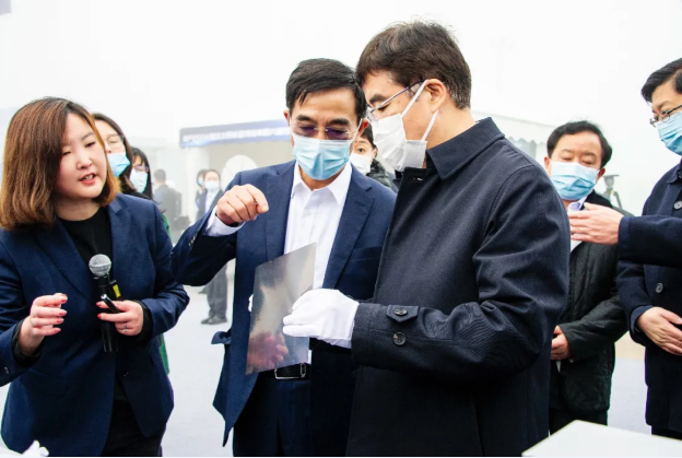 在项目现场的产品展示区,连茂君详细了解公司生产经营、在建项目进展、技术研发成果等情况。连茂君强调,中环半导体DW智慧工厂(三期)项目开工,将为滨海新区服务实现“双碳”目标、打造自主创新重要源头和原始创新主要策源地提供重要支撑。希望公司扎根新区,构建全产业链,实现更高质量发展,努力为新区发展作出新的更大贡献,并要求开发区、各部门进一步加大服务力度,强化上下游产业链衔接,全力为企业创新发展提供坚强支撑。