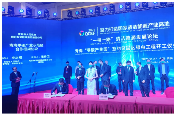 论坛开幕式上,张传卫董事长与青海省委常委、常务副省长李杰翔分别代表明阳集团和青海省人民政府签署《零碳产业示范区合作框架协议》。本届“一带一路”清洁能源发展论坛,共有600余位能源领域电源端、电网端、产业链端、储能等行业领袖和代表参会深入研讨,多角度多层次展示青海打造“国家清洁能源产业高地”背后的价值和意义。