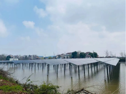 枞阳县横埠镇80MW渔光互补光伏发电项目由特变电工新能源承建,采用先进的166mm硅片单晶双面双玻组件,具有优异的抗PID性能,可以保证在高温高湿环境下长期正常运行。组件功率达到445Wp,配合集中式箱逆变一体机,能够极大的提升土地利用率。项目采用固定支架安装,保证了组件离水面高度能够满足防洪和渔业养殖的要求,极大的提高了单位面积土地的经济价值。项目建成后电站总装机容量80兆瓦,年均发电量约8759万kWh,每年可节约标煤2.8万吨,减少排放二氧化碳 8.73万吨,对减轻污染、保护生态具有显著效益,实现了社会效益、经济效益和环境效益的共赢。