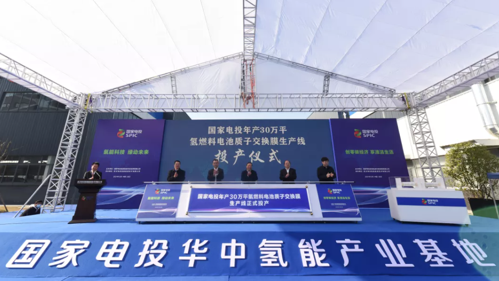 12月5日,国家电投氢能公司30万平方米质子交换膜生产线投产仪式在武汉举行。国家电投董事、党组副书记祖斌,中国科学院院士、武汉理工大学校长张清杰,武汉市委常委、经开区工委书记刘子清,武汉市政协副主席干小明等领导出席仪式。