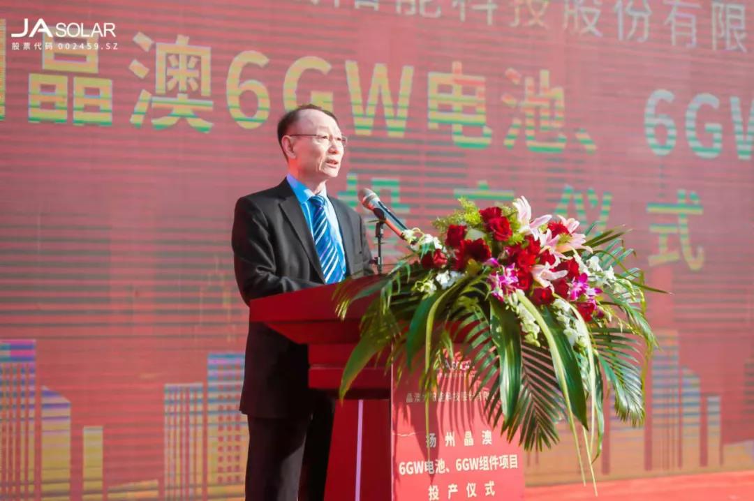 靳保芳董事长在致辞中表示,晶澳科技扬州基地是领先的光伏制造基地和电池组件研发中心。新投产项目采用行业先进的设备和技术,主要生产182mm大尺寸高效电池、DeepBlue3.0高功率组件,产品将供应全球客户。面对全球“碳中和”机遇,晶澳科技将积极抢抓机遇,加快发展,为全球绿色发展贡献力量。