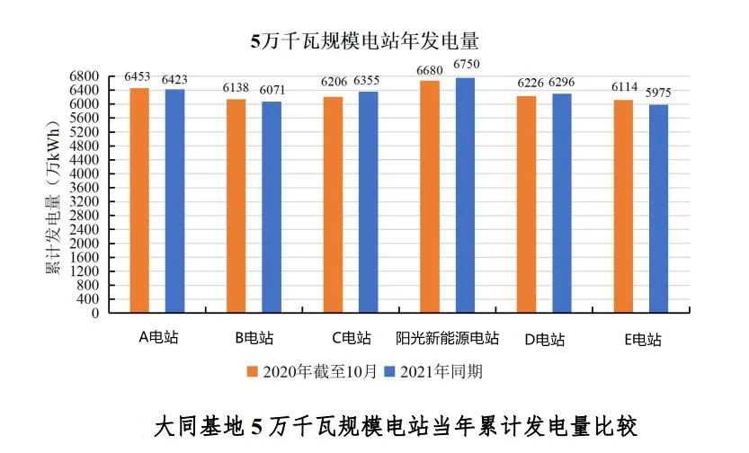 “领跑”还在持续。截至10月,阳光新能源项目2021年总发电量为6750万千瓦时,不仅在所有同容量电站中高居榜首,同时高于去年同期水平。