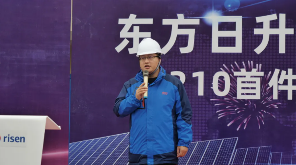 集团组件事业部总经理王圣建发表致辞:“宁海生产基地二期,经过前期的周密规划及各部门的通力合作,终于迎来了210组件首件产品下线,我谨代表组件事业部对参与以及支持本项目的人员表示由衷感谢!作为东方日升最大的组件单体项目,设计产能8GW,承接了全新的210、异质结、TOPCON等新型产品,对于抢占高端市场意义重大!希望在各位的持续努力下,以高起点、高姿态创造更高的全球标准”。