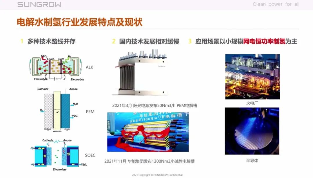 12月15日,在中国光伏行业年度会议上,阳光电源股份有限公司高级副总裁兼中央研究院院长赵为在现场做了《光伏-制氢发展模式经济性分析》的报告。