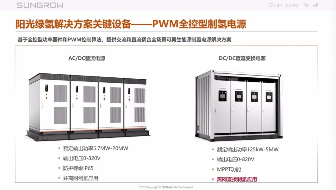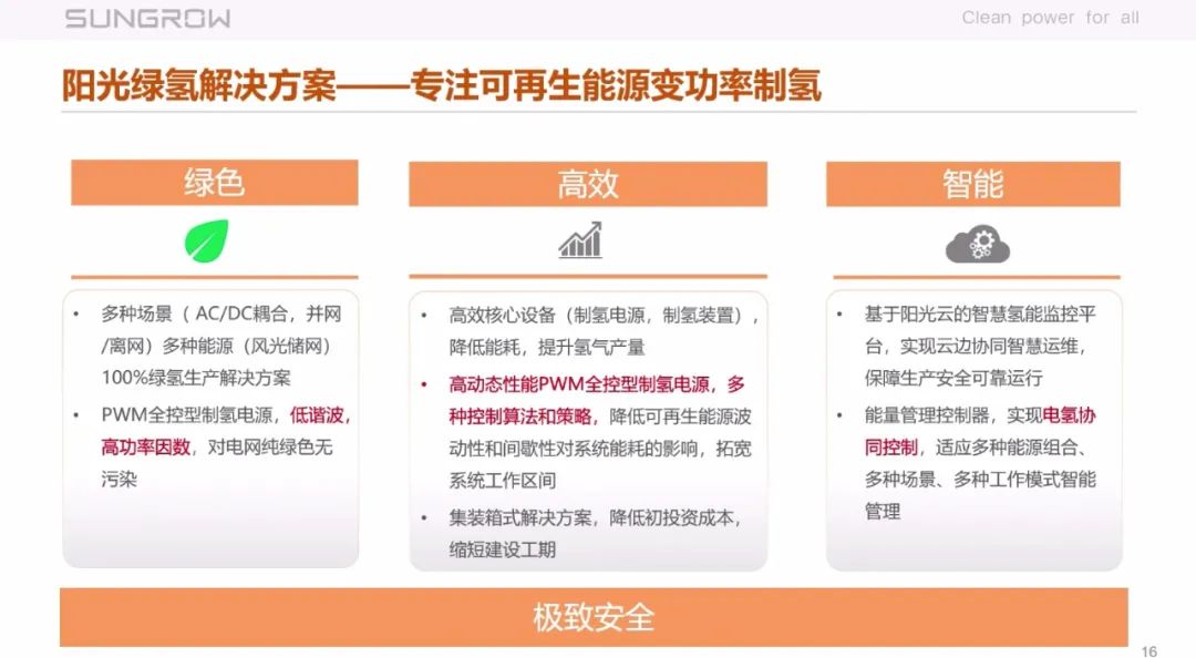 当前,阳光电源已经在该领域布局并推出了绿氢解决方案。