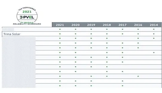 天合光能连续七年位列PVEL计分表(score card)位列顶级表现水准(Top performer criteria), 是行业仅有的两家达到此级别的组件供应商之一。天合光能在产品研发迭代的过程中,始终以产品的可靠性为基,为客户提供稳定可靠高性、高价值的产品。