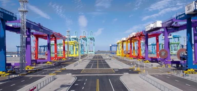 码头主要的用能设备、运输工具、流动机械全部实现深度电气化,包括:岸桥和龙门吊全部利用高压电能驱动,三个泊位全部配置高压岸电系统。码头内所有运输车辆、流动机械全部改为电动ART、电动重卡、电动叉车、电动堆高机、电动装载机。同时利用先进的监测控制技术和大数据分析手段提升作业效率和节能率。