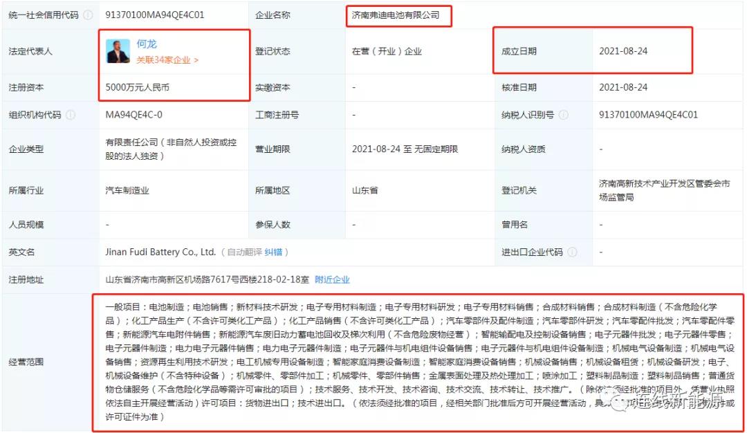 2020年12月11日,比亚迪成立了弗迪实业有限公司,是全资子公司,注册资本5亿元,法定代表人为何龙。