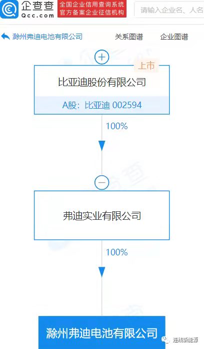 弗迪实业有限公司为比亚迪股份有限公司的全资子公司,这也就意味着新成立的电池研究公司由比亚迪100%间接持有。