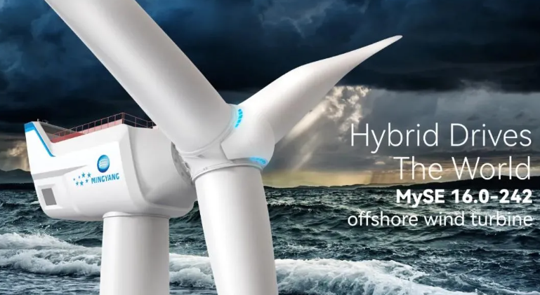 今年8月,明阳还推出了世界上最大的半直驱风电机组MySE16.0-242机型,一举“跃居”成为单机容量中国最大、全球最大的海上风电机组。目前,该机型已经获得DNV和鉴衡认证,预计2022年首台样机下线,2023年上半年样机安装,2024年上半年实现商业化量产。