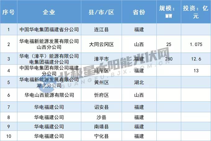 具体来看,华电(漳平)能源有限公司电集团福建分公司在漳平市投资12.6亿元建设280MW分布式项目,华电福新能源发展有限公司山西分公司将在山西云冈去投资1.075亿元建25MW分布式项目。