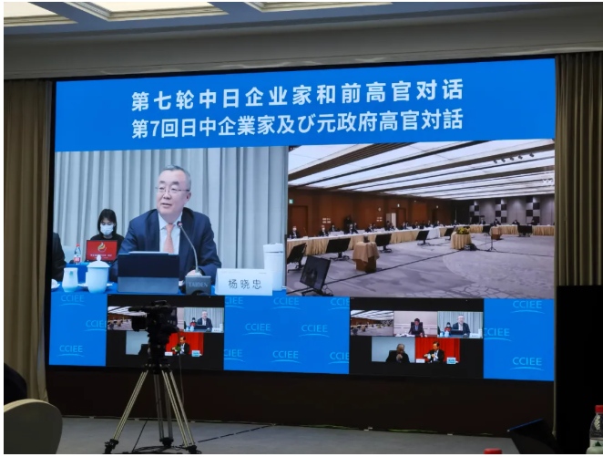 2021年12月21日,第七轮中日企业家和前高官对话会议以现场与线上视频形式举行,国务院原副总理、中国国际经济交流中心理事长曾培炎,日本前首相福田康夫率双方代表与会,就中日经济形势、区域经济合作、绿色转型、养老照护等议题展开交流,并发表联合声明,旨在促进双边经贸交流与合作,构建契合新时代要求的中日关系。天合光能副总裁兼首席品牌官杨晓忠应邀出席,并就天合光能助力推动中日清洁能源发展与碳中和发言。