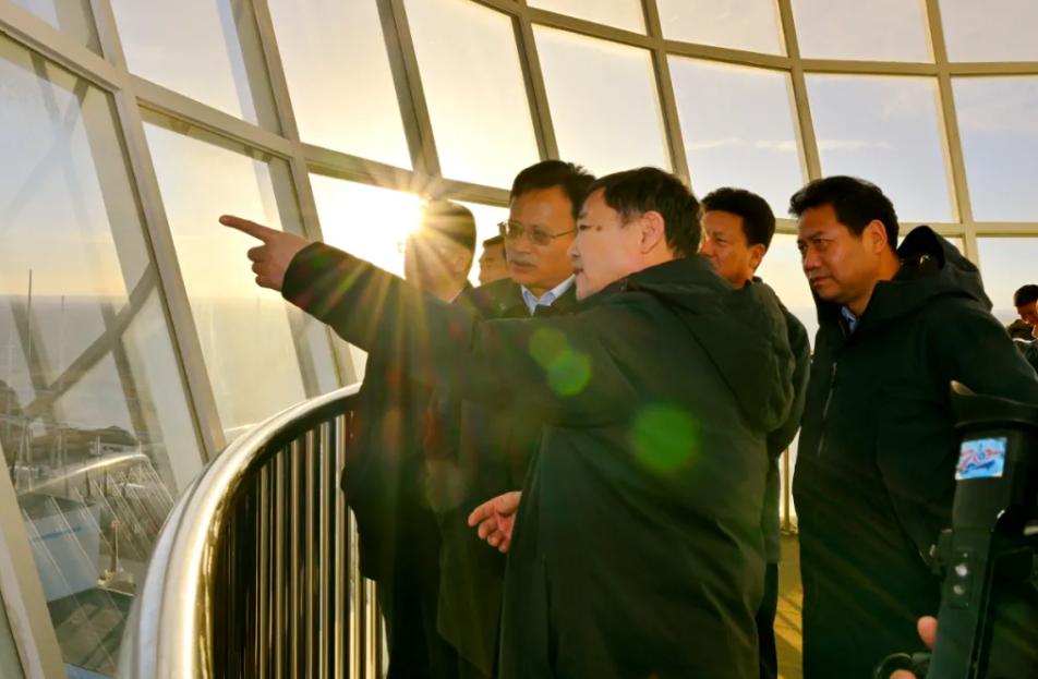 随后,胡广杰一行登上巡检塔俯瞰了光伏产业园区全貌,了解电站运行及光伏产业未来发展趋势等情况。