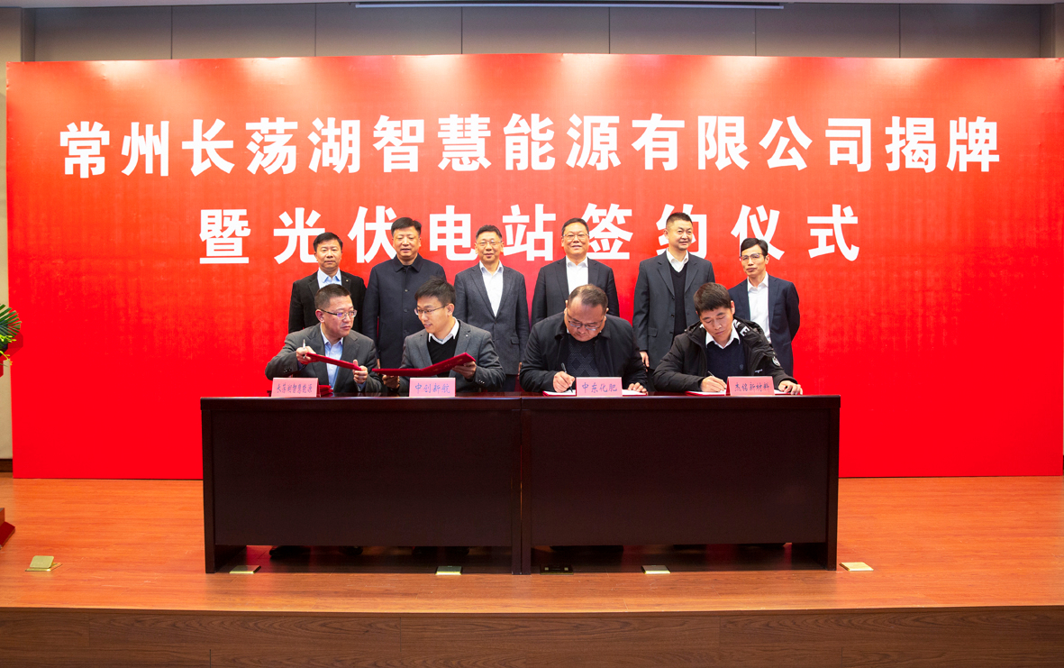 在揭牌仪式上,常州长荡湖智慧能源有限公司与位于金坛区的中创新航科技股份有限公司、常州杰铭新材料有限公司、江苏中东化肥股份有限公司完成光伏电站签约仪式,投资建设上述企业屋顶分布式光伏项目。项目投产后预计将每年为企业提供超过700万度的绿色电力,全生命周期内可以产生超过1.75亿度的绿色电力,助力企业绿色发展。
