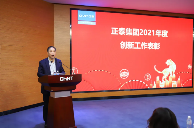 1月12日,正泰集团2021年度工作总结暨创新表彰大会召开,正泰集团董事长南存辉作主旨讲话,集团总裁朱信敏主持会议并宣读“集团数字化转型领导小组”成立文件,集团党委书记吴炳池宣读 “创新我闪耀”第二届正泰创新金案例、金点子、金先锋评选表彰文件,公司及相关产业负责人作年度工作报告,开启了全球近4万名正泰人与数十万生态圈伙伴共同迈进“双千亿”、奋勇开拓数智双碳新蓝海的全新征程!
