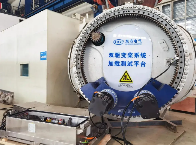 近日,东方风电自主研发,适用于15+MW级风力发电机组的全新一代全国产化集成式电动双驱变桨系统,在测试中心完成各项型式试验,成功下线。