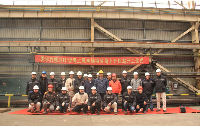 2019年12月2日下午2时许,国华竹根沙H1# 200MW海上风电升压站上部组块开工仪式如期举行。