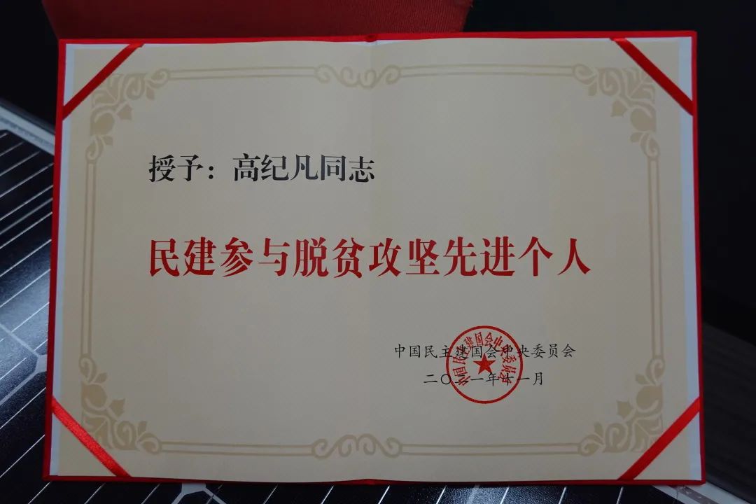 近日,民建中央下发《关于表彰参与脱贫攻坚先进个人和先进集体的决定》,授予230名同志“民建参与脱贫攻坚先进个人”荣誉称号、91个集体“民建参与脱贫攻坚先进集体”荣誉称号。其中,民建中央常委、天合光能股份有限公司董事长兼首席执行官高纪凡获得此项殊荣,这也是高纪凡自2019年获得该荣誉之后再获全国表彰。