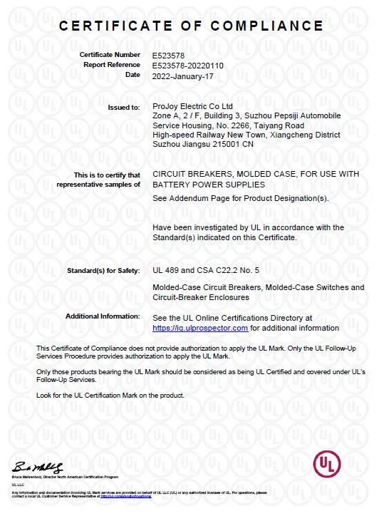 此前,普兆电气高压直流微型断路器已取得TUV认证和欧盟CE认证,此次再获UL认可,为保障全球储能系统安全、助力全球储能领域发展,打下了坚实的基础。