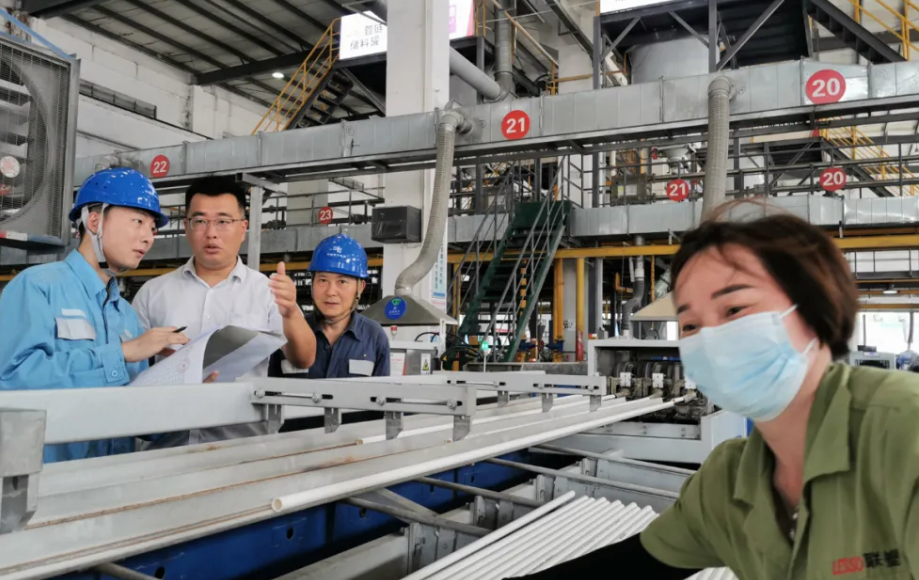 2021年,南方电网公司出台八大重点举措全力保障电力可靠供应,为经济社会发展提供了坚强支撑。图为在广东一建材家居企业的生产车间内,南方电网广东电网佛山顺德供电局工作人员向企业用电负责人详细了解近期生产计划及用电需求。