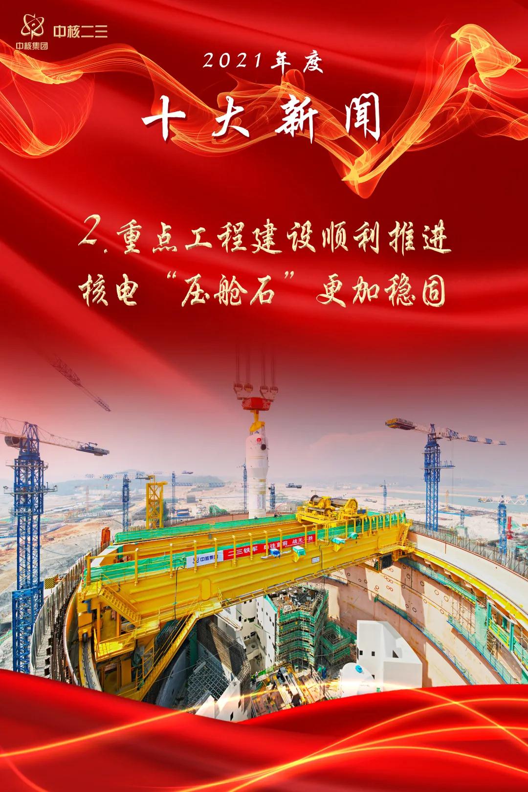 2021年,公司坚决扛起首要政治责任,发挥“集中力量办大事”的优良传统,按期完成年度重点工程节点目标。深刻认识和准确把握“三新一高”要求,全力以赴推进核电工程项目建设,持续擦亮核电建设铁军“金字招牌”。2021年,中标三澳核电一期工程核岛安装工程(标段Ⅱ)合同,顺利实现太平岭核电1号机组核岛安装开工,漳州核电1号机组创纪录完成8台主设备吊装,福清核电6号机组“热试”,红沿河核电6号机组“热试”,高温气冷堆核电站装料,福清核电5号机组、田湾核电6号机组、红沿河核电5号机组实现商业运行等20个重大里程碑节点。