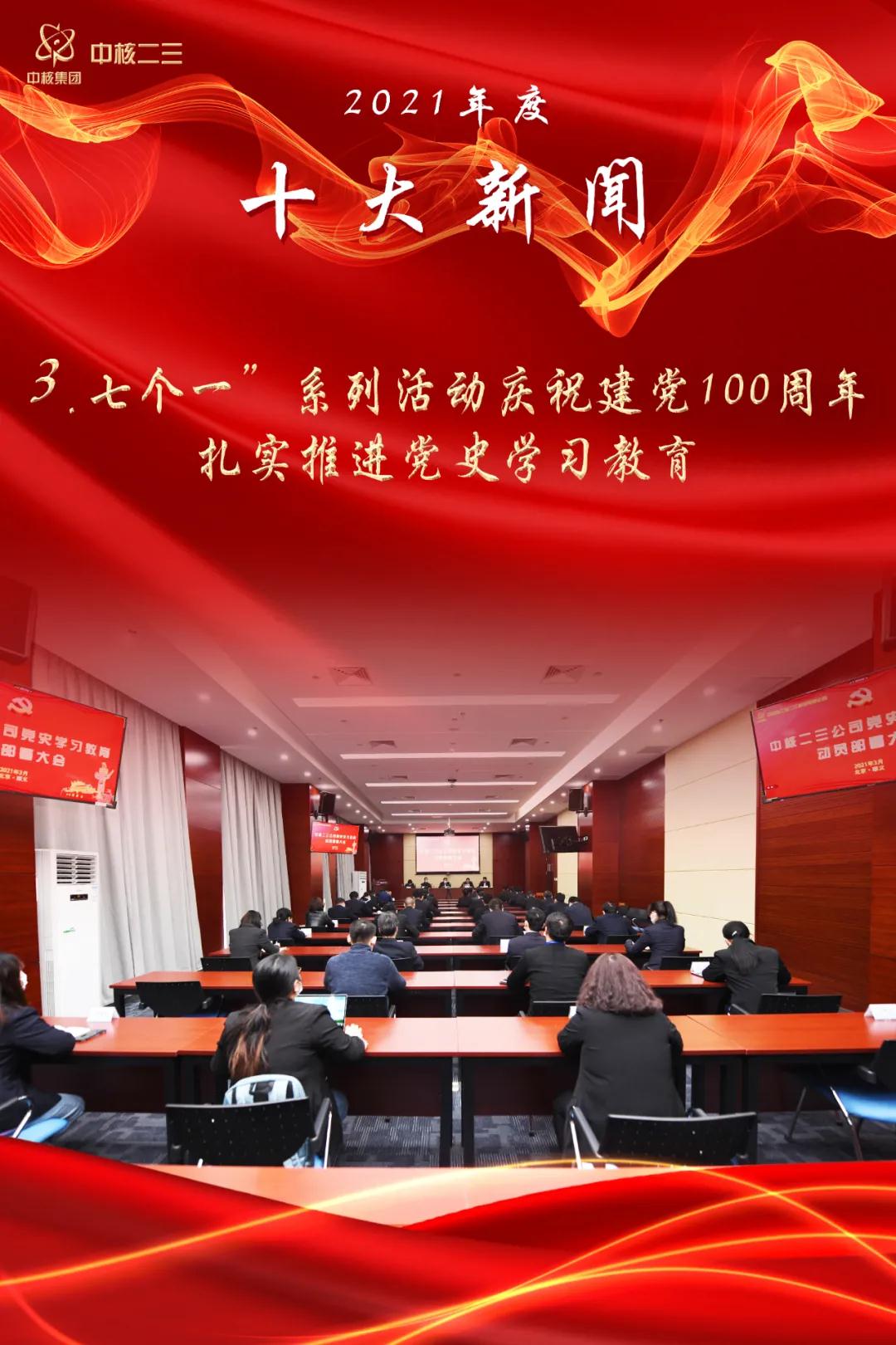 2021年是中国共产党成立100周年,党中央决定在全党开展党史学习教育。7月1日,庆祝中国共产党成立100周年大会在天安门广场隆重举行,中核二三未晓朋受邀参加庆祝大会,代表核工业建设者现场见证党的百年华诞。此外,公司核后代冯琳作为领诵员之一,代表中国青年表达对党的热爱和赓续革命精神的青春诺言;员工子女作为合唱团成员参与大会演出。为庆祝党的百年华诞,公司策划开展了“七个一”系列活动,即:一系列党性教育活动、一系列典型选树推广活动、一系列专题宣传展示活动、一系列主题实践活动、一次庆祝建党100周年大会、一场庆祝建党100周年文艺汇演、一次党群业务技能竞赛,以优异成绩向党的百年华诞献礼。同时,扎实推进党史学习教育,开展“领导干部带头领学、专题辅导深入学、网络大学灵活学”“三学”模式,围绕学好指定学习资料,准确把握党史中蕴含的真谛要义;公司领导班子成员,老领导、全国劳模、先进人物等围绕党史学习教育开展主题授课200余次;集团刊发的66期简报刊登公司动态41条,林祖煌观看“七一”直播心得简报刊发在中央简报第103期;扩建党性教育基地,全新打造党史、核工业史展区,为公司开展党史学习教育打造特色学习平台。
