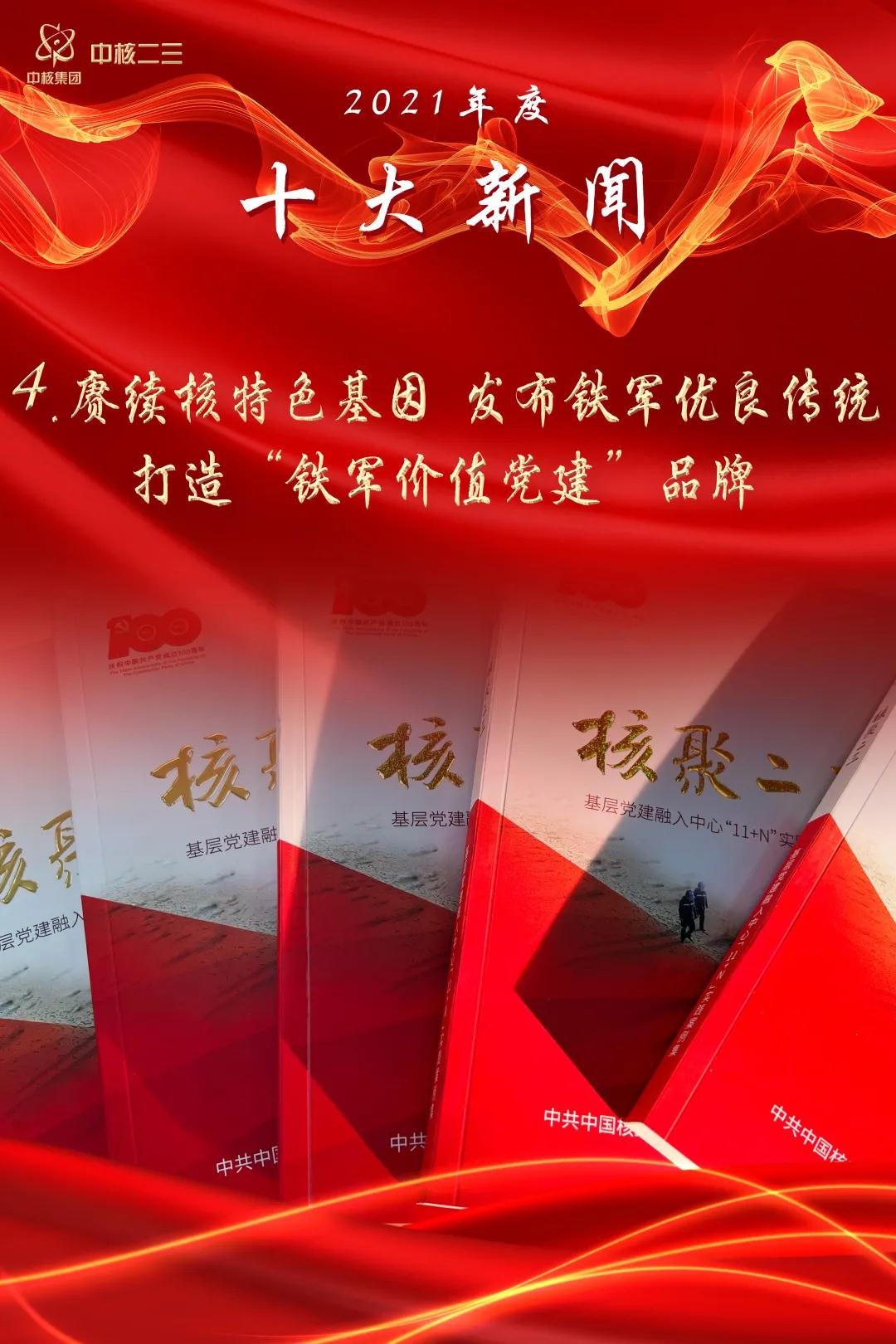 2021年,中核二三党委坚定不移加强党的建设,赓续核特色基因,7月7日,正式发布“政治过硬,纪律严明,战无不胜,勇往直前”铁军优良传统,打造形成“铁军价值党建”品牌,制定印发“品牌建设工作指引”,课题研究成果入选中国社科院编发的《国有企业党建蓝皮书》。深入挖掘43篇基层党组织党建融入中心良好实践,编印《核聚二三》案例集,公司党建案例获评中国核建2021年度党建融入生产经营优秀案例一等奖。压实党委主体责任,扎实推进巡视整改工作,获评中核集团巡视整改先进党组织荣誉称号。首次开展《党建工作质量大纲》现场评估,推进闭环管理。深入调研混改企业党建工作,探索制定混改企业党建工作实施细则。获评“核工业思想政治研究工作优秀单位”称号,核工业政研会课题研究成果获二等奖。铁军正能量蔚然成风,郑艳奇、宁健、郝先进、马海华路遇车辆侧翻,挽救陷于危险境地的陌生司机生命;90后”梁程捐献造血干细胞,为一名学龄前儿童带去生命的希望。