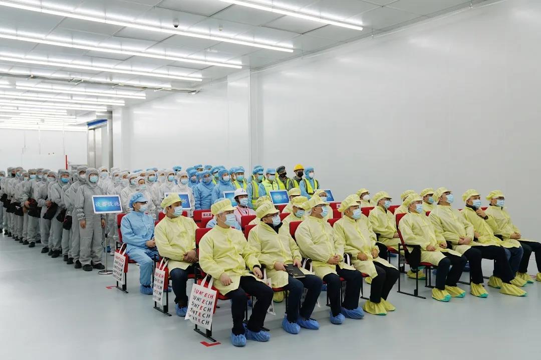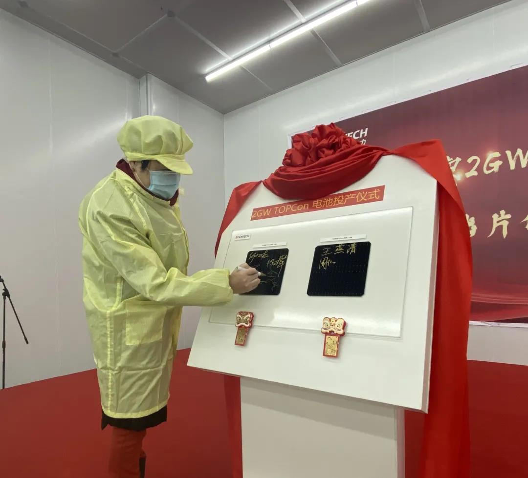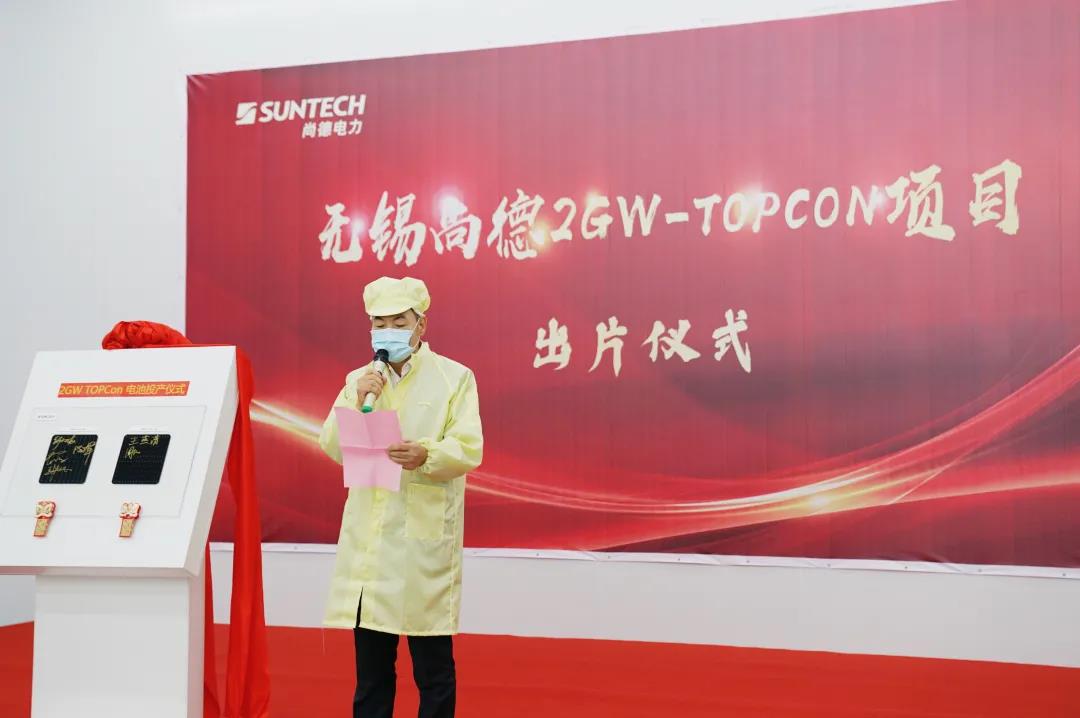 1月24日,无锡尚德举行2GW TOPCon高效电池智能工厂投产出片仪式,无锡尚德总裁何双权、先导智能董事长王燕清、微导纳米总经理周仁等领导及相关人员出席活动。