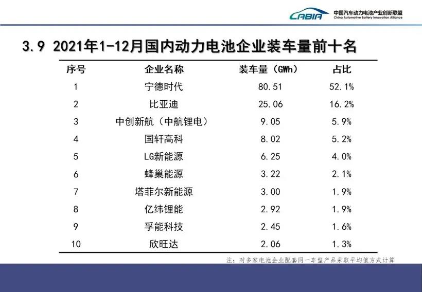 单看中国市场,就中国汽车工业协会发布的最近数据显示,新能源汽车产销分别达到354.5万辆和352.1万辆,同比增长均为1.6倍,全年市场占有率提升至13.4%。体现到动力电池板块,中国汽车动力电池产业创新联盟公布数据显示,2021年全年我国动力电池装车量累计154.5GWh,同比累计增长142.8%,其中宁德时代全年装机量超80GWh,以52.1%市场占有率稳居全国第一。
