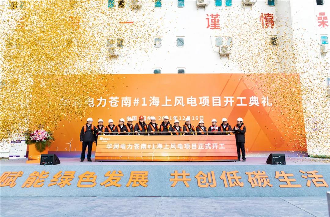 2021年12月16日,华润电力国内首个海上风电项目苍南1号在浙江苍南开工。项目规划装机容量400兆瓦,计划于2022年12月底投产,年上网电量13.5亿千瓦时,与相同发电量的常规燃煤火电机组相比,每年可节约标煤约42.2万吨,淡水400万立方米,经济和环保效益明显。项目作为国内第一个开工建设的平价海上风电项目,在多维度进行创新,对于平价海上风电发展具有重要意义。同时作为公司首个海上风电项目,是公司新能源发展建设的重要里程碑,将加快推动公司新能源事业大发展、再发力。