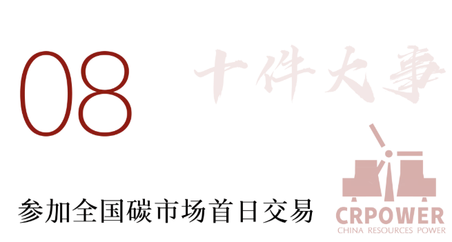 2021年7月16日,全国碳市场正式开市,华润电力凭借良好的市场表现和积极务实工作参加了首日交易。当日,华润电力化工园电厂、沈阳电厂与湖.南电厂达成25万吨配额交易量。碳交易工作是公司贯彻落实习近平总书记提出的“碳达峰、碳中和”目标的重要体现,展现了良好的企业形象,推进公司向绿色低碳持续转型。