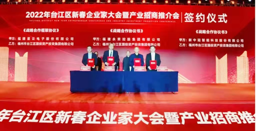 2022年2月14日,在2022年台江区新春企业家大会暨产业招商推介会上,同步举行了台江区重点项目签约仪式,共有7个重点项目上台签约,涉及金融服务、能源装备、餐饮、数字贸易、新能源基建、供应链贸易等领域。