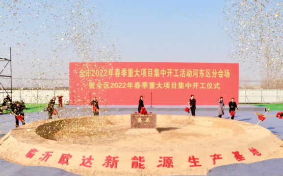 2022年2月25日下午,临沂欧达新能源生产基地的开工奠基仪式在项目建设现场举行。临沂区委常委、常务副区长程刚,区委常委、副区长范浩,区人大常委会副主任诸葛夫杰,区政府副区长高仁彬,区政协副主席周迎,区政协副主席鲍静,区政协副主席吴雪,河东公安分局局长尹华卫,农高区党工委书记、管委会主任王金奎,河东经济开发区党工委书记、管委会主任冯正新,宁波欧达光电有限公司董事长张鸿雁,以及区直有关部门、单位主要负责同志,郑旺镇、河东经济开发区副科级以上干部出席开工仪式。