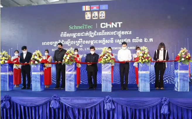 SchneiTec x CHINT 柬埔寨合资工厂是柬埔寨菩萨省第一家中压综合性电力设备制造企业。合资工厂园区总占地20000平方米,总投资250万美元。工厂于2020年8月立项、同年11月开工建设,到最终投产耗时不满1年,再次彰显正泰速度。工厂现已正式投产,主要生产22千伏配电变压器、开关柜、智能环网开关设备、电容器组等电气产品。