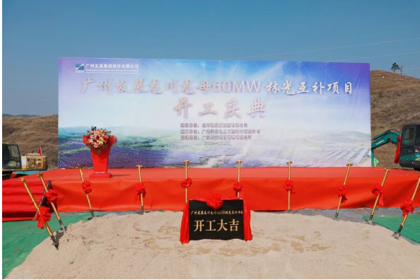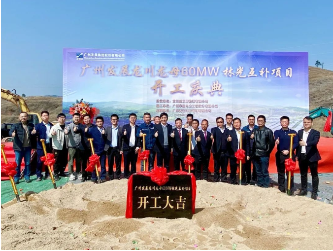 在礼炮奏乐的喜庆氛围下,领导及嘉宾为广州发展龙川龙母60MW林光互补项目奠基培土,表达对项目的美好祝愿,也表达了全心全意为项目实施提供良好服务的决心。