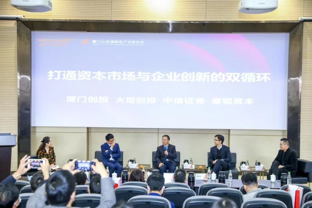 围绕对话主题,厦门市创业投资有限公司副总经理叶国兴、厦门火炬集团创业投资有限公司副总经理詹泓恺、中信证券副总裁戴五七、德韬资本总裁韩玉男四位资深投资人从自身多年来的投资经验,以及对产业、资本的理解出发,深入探讨资本助力企业创新的方法、通路。个个观点深入、金句频出!