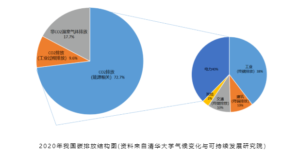 2020年我国碳排放结构图(资料来自清华大学气候变化与可持续发展研究院)