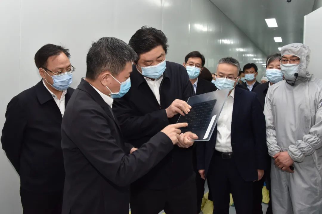 3月3日,无锡市代市长赵建军一行就碳中和碳达峰工作开展情况走访调研无锡尚德,市政府秘书长陈寿彬、市发改委、市工信局、市生态环境局、新吴区区长章金伟、旺庄街道书记黄锡渭,无锡尚德总裁何双权、高级副总裁陈必华、副总裁曹晓荣等陪同接待。