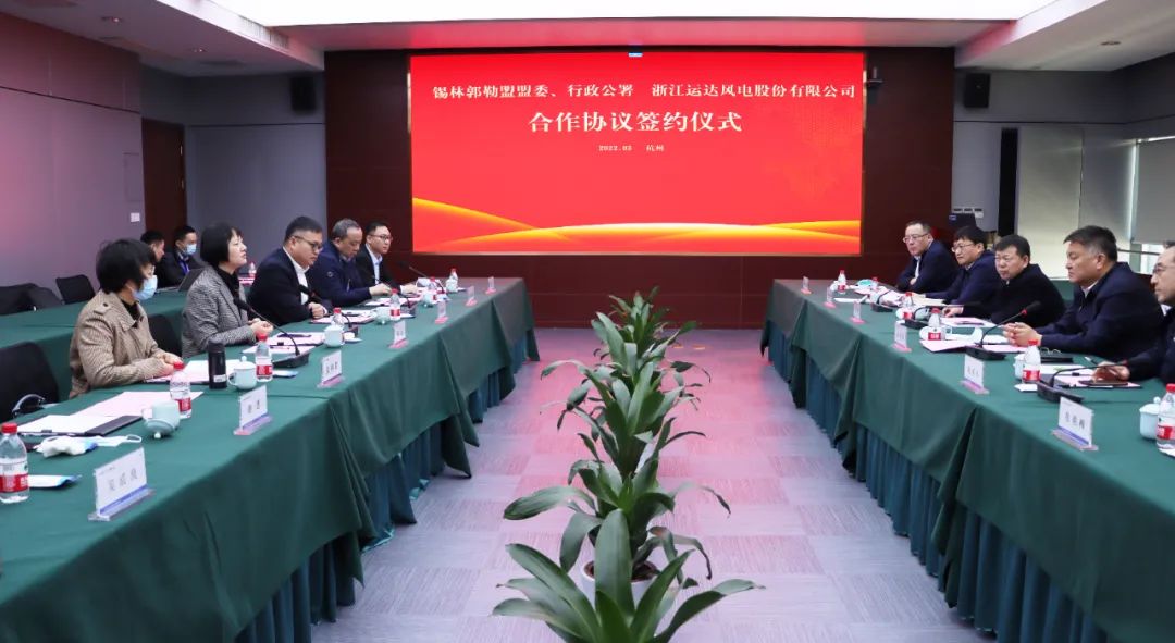 3月9日,运达股份与锡林郭勒盟行政公署(正蓝旗人民政府)合作签约仪式在杭州举行。根据协议,双方将携手围绕锡盟绿色能源、绿色制造业发展、推进示范区能源转型进程等方面进行详细部署,合力走出一条高质量发展新能源建设与乡村振兴相结合之路。