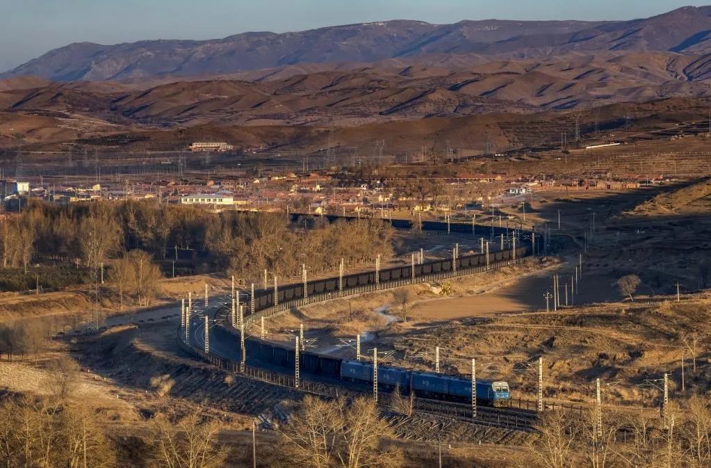 2021年12月23日,一列万吨煤炭列车行驶在内蒙古乌兰察布市卓资县境内。