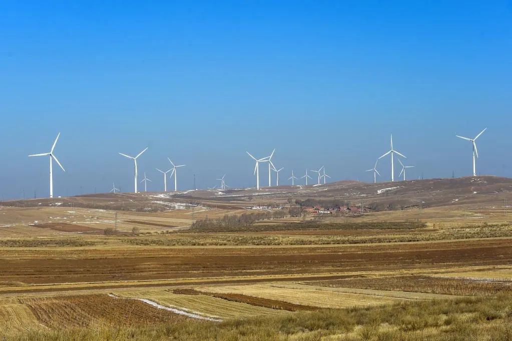 这是1月20日拍摄的位于乌兰察布市察哈尔右翼中旗的恒润风电场。