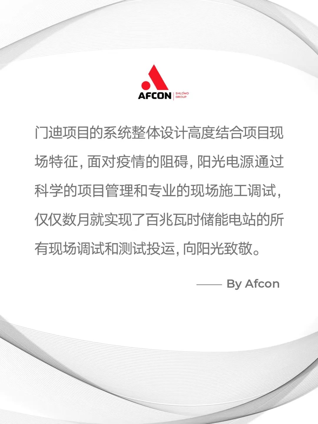 在新能源发展的推动下,属于储能的时代已经到来。门迪项目不仅是中国企业携手出海、强强联合的典范,也是全球储能发展历程中浓墨重彩的一笔。未来,阳光电源将为更多合作伙伴提供优质产品和服务,“复刻”门迪成功经验,助力全球构建零碳未来。