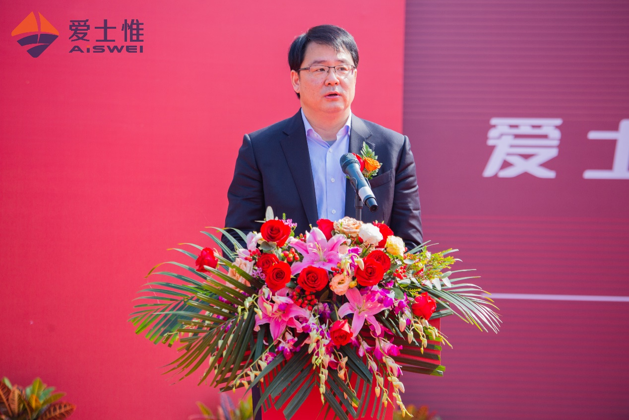 扬中经开区党工委书记周鹤军做开场致辞。他表示,爱士惟是经开区优秀企业的典型代表,经过十多年的发展,企业规模不断壮大。今天的项目开工,标志着爱士惟新一轮的开疆拓土正式启动,也标志着经开区新能源产业又一颗新星即将冉冉升起,也必将为经开区、乃至全市高质量发展提供强有力的支撑。