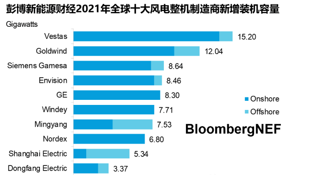 最新发布数据显示,电气风电在2021年全球风电整机制造商海上风电新增装机容量排名中位列第一,成功问鼎全球。