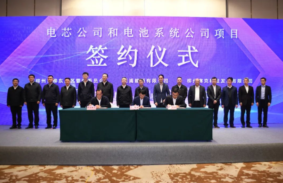 广西自治区工信厅副厅长汪东明、柳州市副市长汤振国、瑞浦能源有限公司董事长曹辉、柳州赛克科技发展有限公司总经理廖鸿胡分别代表四方签署《动力电池电芯及电池系统项目合作协议》;柳州市柳东新区管委会主任刘度量、瑞浦能源有限公司董事长曹辉、柳州赛克科技发展有限公司总经理廖鸿胡分别代表三方签署《电芯公司和电池系统公司项目投资协议》。
