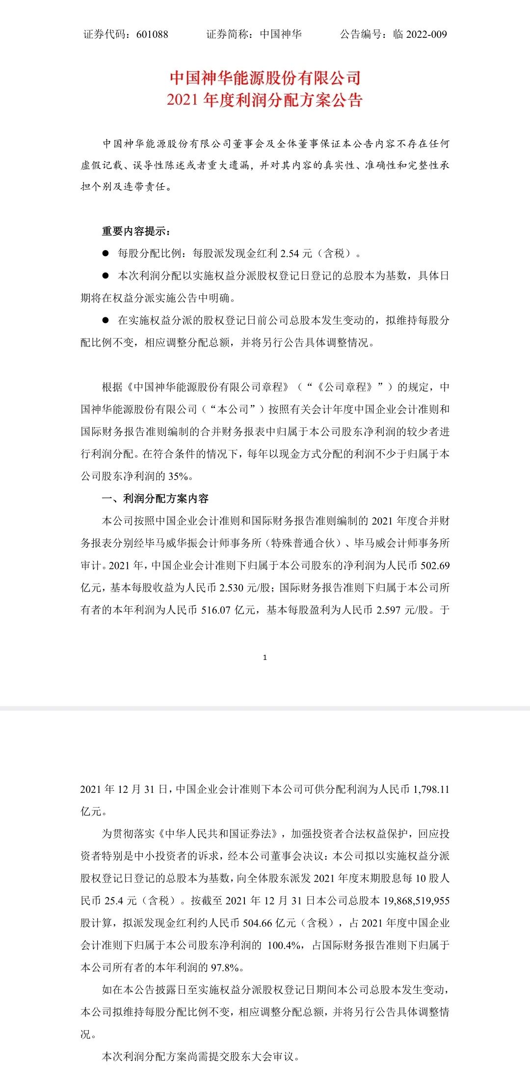 气吞山河!中国神华2021年净利润502亿,拟分红504亿!
