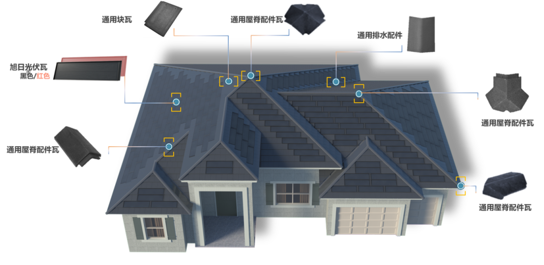 同时,采用5模平板瓦型设计,这意味着在传统屋面上拆卸5块常规平板瓦,就能安装一块旭日瓦;如果同时拆卸60㎡的传统瓦,那么,你将拥有一套10KW的旭日瓦系统,与常规瓦无缝衔接!